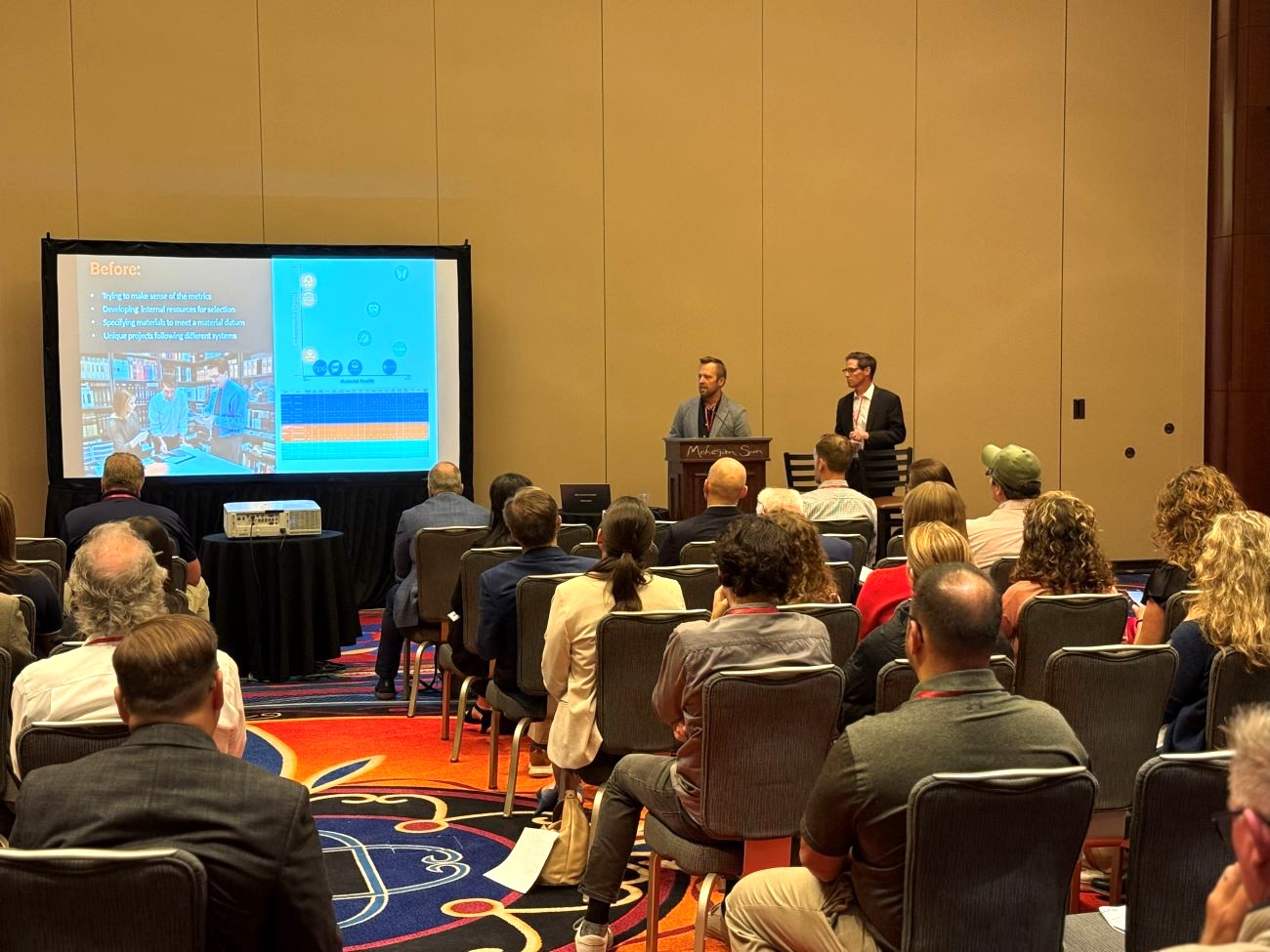 Brett Lambert, AIA, and Michael Tyre, AIA, led “Leveraging the AIA’s Initiatives to Transform Practice – One Firm’s Journey.” The session detailed Amenta Emma Architects’ adoption of the AIA Framework for Design Excellence, AIA 2030 Commitment, and the AIA Materials Pledge. Through real project examples and firm-level strategies, Brett and Michael demonstrated how these frameworks have transformed the firm’s design process, material selection, and project delivery while reducing carbon impact across their portfolio.