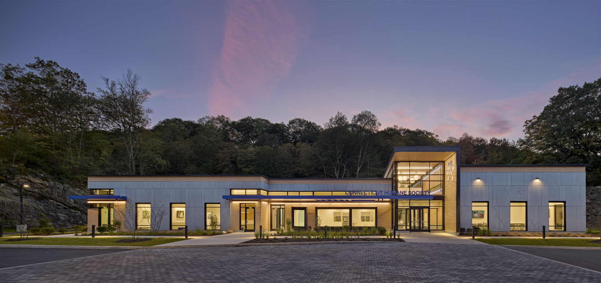 The Connecticut Humane Society needed to replace its outdated Westport facility with a modern campus that could address growing community needs. After serving Fairfield County since the 1950s, the organization sought a location with room to expand its mission beyond traditional shelter services – providing affordable veterinary care, behavioral support, community outreach, and foster coordination. The 13,971 SF facility on an 18-acre Wilton site needed to reflect CHS’s values of compassion and professionalism while creating a welcoming environment for animals and their families.
