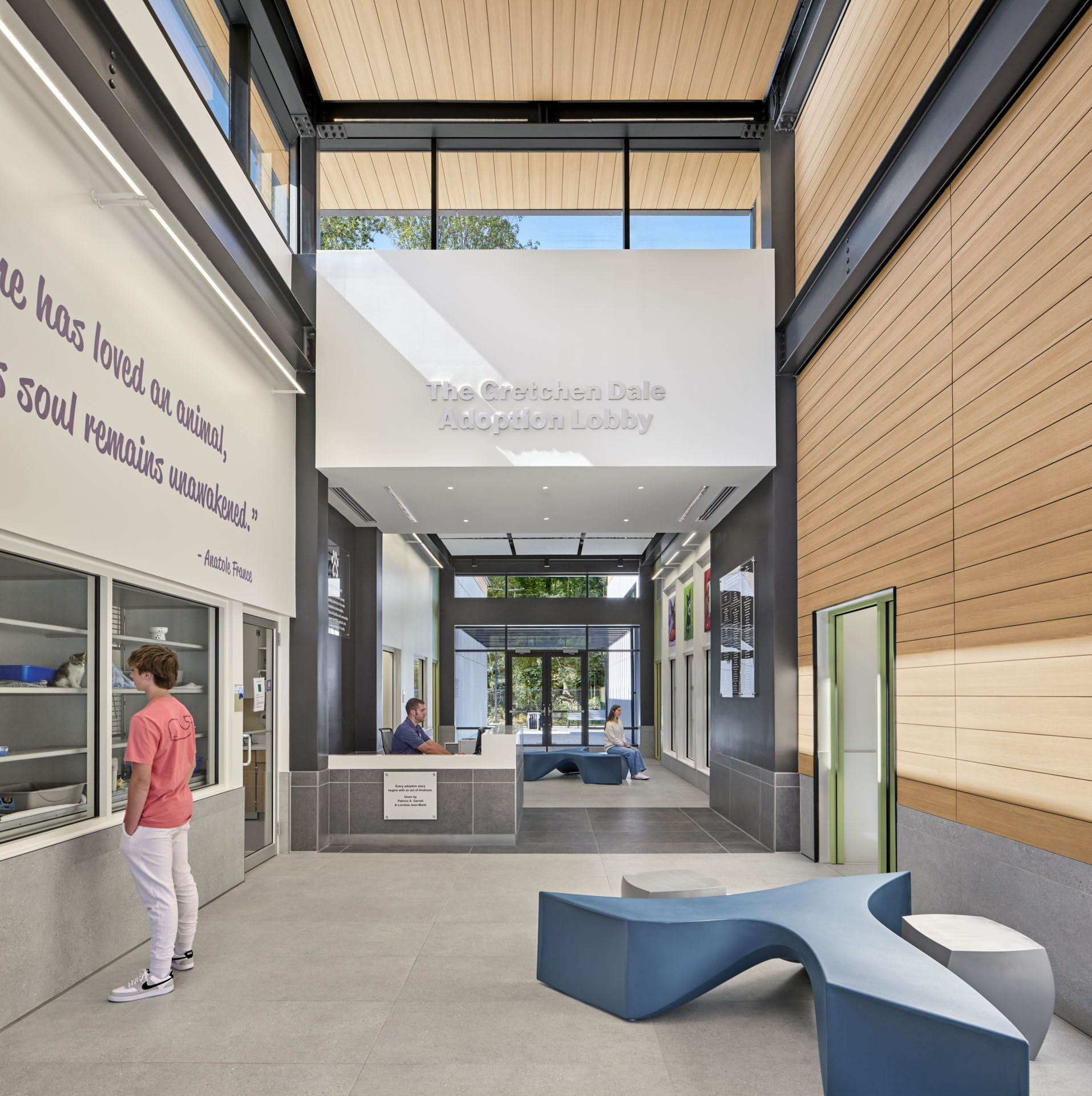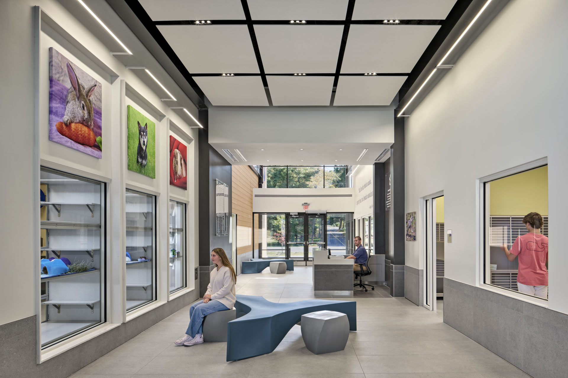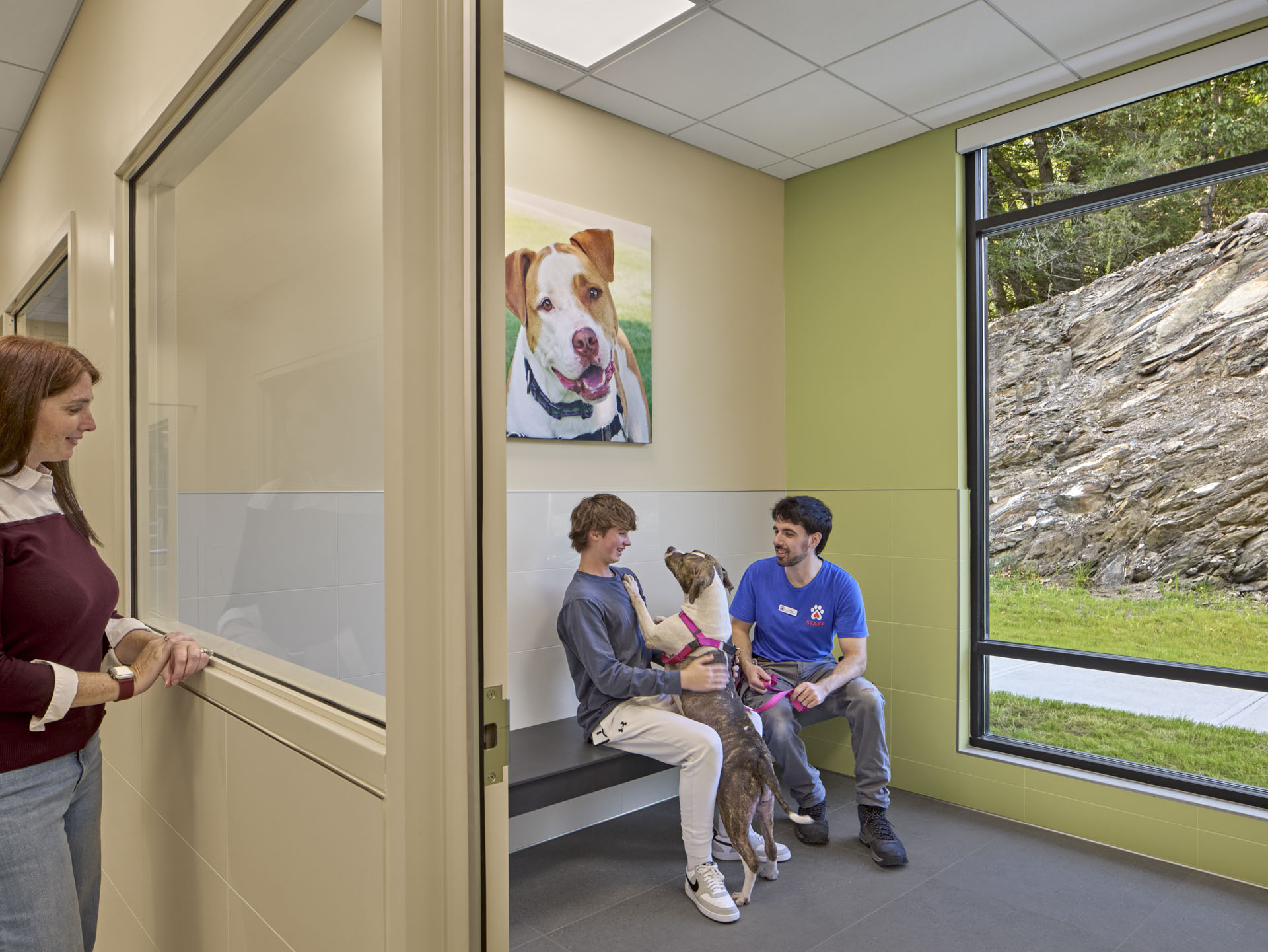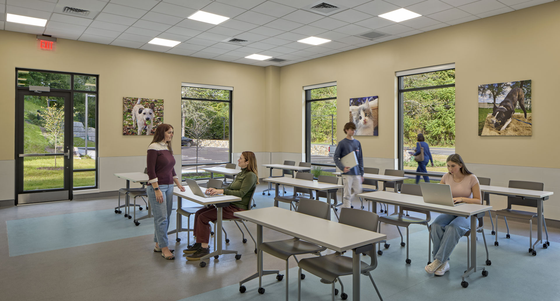 The result is a facility designed for both animal welfare and human dignity. Thoughtful details – from solar tube skylights in cat rooms to private exam spaces for families facing pet surrender or end-of-life decisions – demonstrate how compassionate design supports CHS’s expanded mission of keeping pets in homes and providing accessible care throughout Fairfield County.