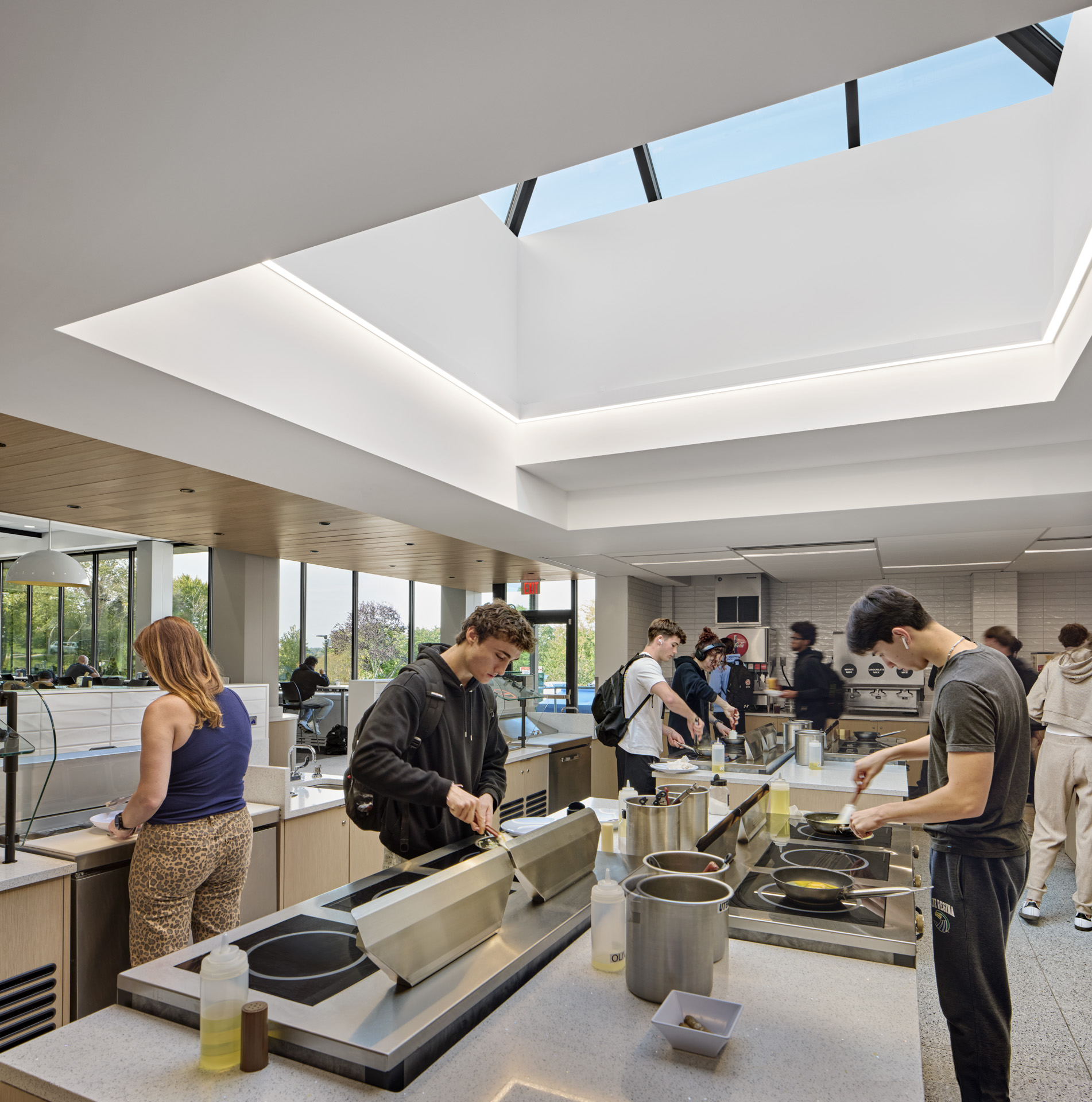 Completed in August 2025, the renovation significantly enhances the student experience by providing a modern, accessible dining environment that fosters community and social interaction. Students benefit from improved traffic flow, reduced wait times, and a wider variety of high-quality dining options accommodating diverse dietary preferences. Staff now work in improved spaces with better equipment for receiving and storing provisions, enhanced cooking and washing facilities, and centralized offices supporting daily operations.